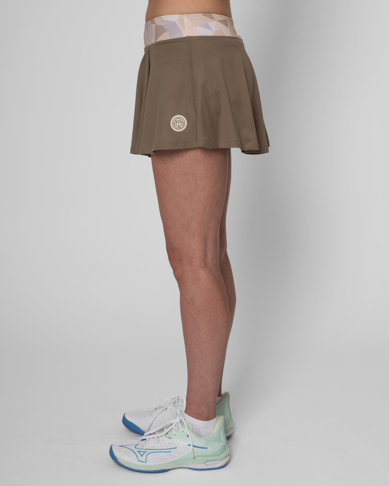 Стильная юбка для девочек с компрессионными шортами бежевого цвета из новой коллекции Paris 2025. Специальный полиэстеровый материал обеспечит вам комфорт и поддержку благодаря дышащей ткани с сетчатыми вставками, эластичному поясу и встроенным компрессионным шортам в нежной светло-синей цветов палитре для хранения мячей. <br>