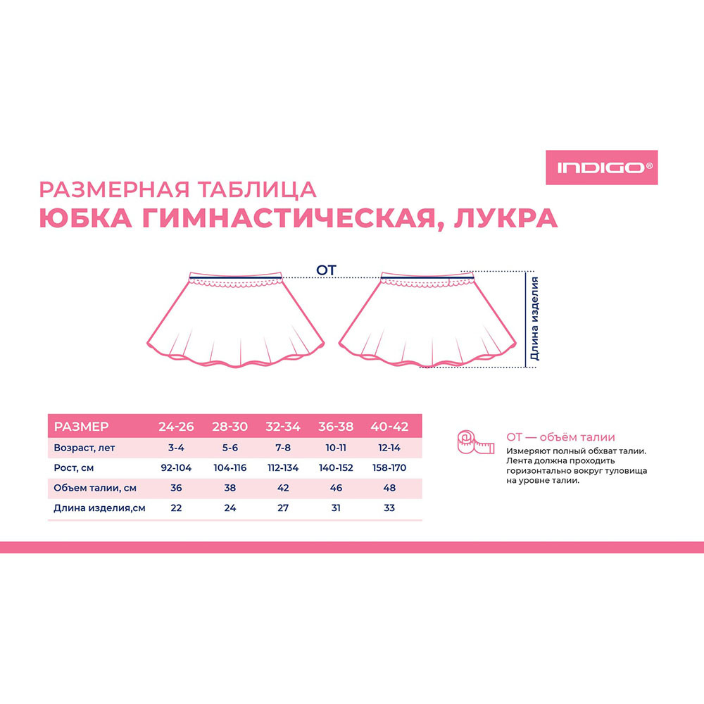 Юбочка гимнастическая лукра INDIGO подойдет для занятий гимнастикой, хореографией или танцами. Служит дополнением к купальнику, которое легко снять. Ткань легкая, что обеспечивает комфорт во время занятий.