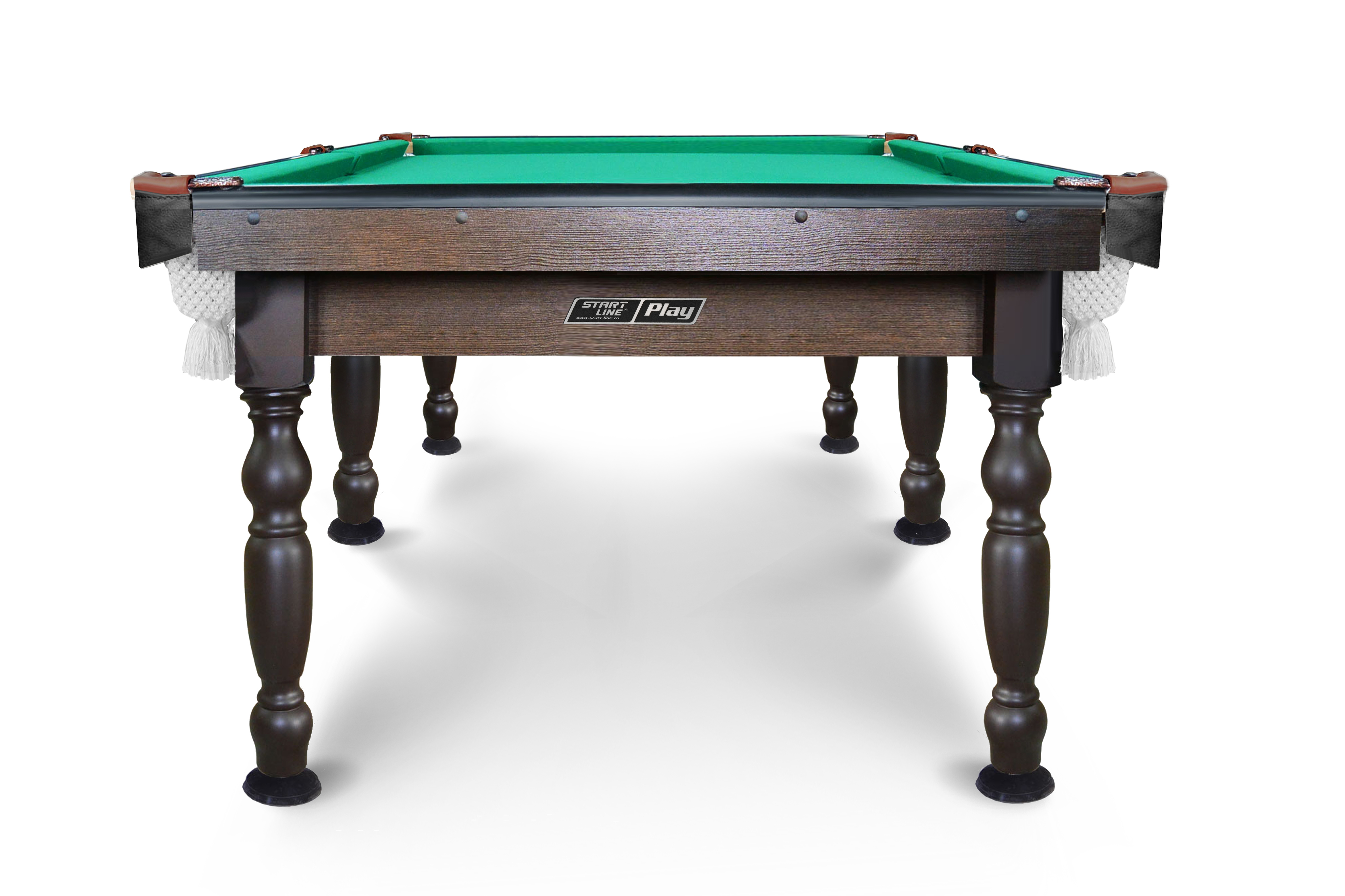 Стол поставляется в собранном виде. Комплектация возможна лузами для русской пирамиды или пула.