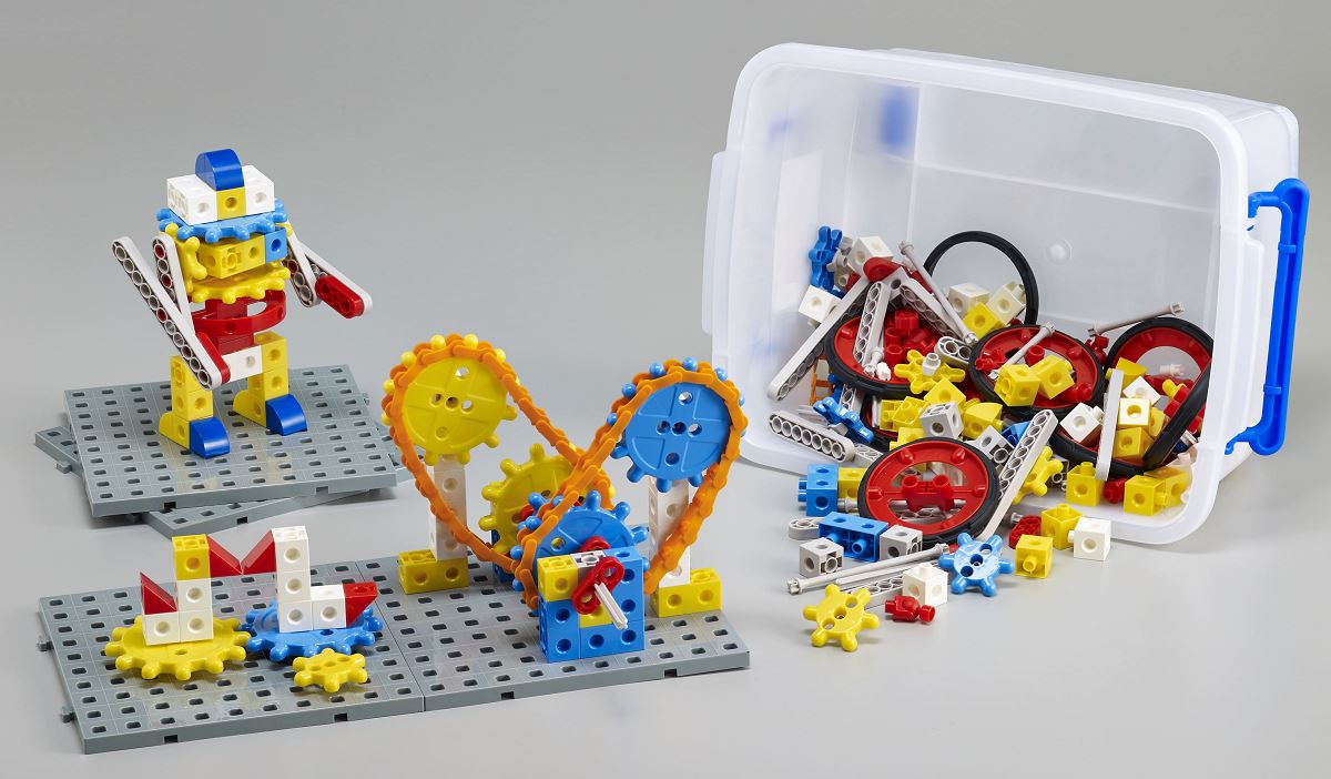 Набор для конструирования «Занимательные шестеренки и 2-х см. соединяющиеся кубики» отлично подойдет для юных инженеров.