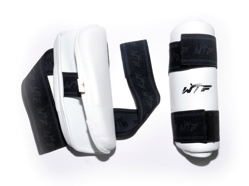 Щитки для предплечья во время занятий тхэквондо. Такие щитки используются не только начинающими спортсменами, но и профессионалами. Анатомическая форма щитка повторяет форму и хорошо сидит на руке. Щиток должен располагаться на предплечье не мешая движению. На защитном щитке имеются эластичные ремешки на липучке обеспечивающие удобную фиксацию на руке. Сам щиток изготовлен из искусственной синтетической кожи с наполнением внутри из EVA. Такой материал прекрасно обеспечивает ароматизацию ударного воздействия и защиту во время тренировок.
