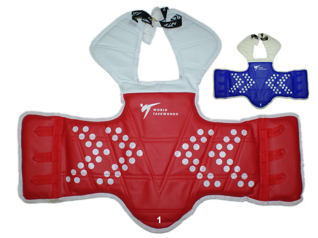 Защитный жилет для тхэквондо WTF производства ZTT комфортно сидит на корпусе, отлично выполняет защитную функцию. Наполнитель из пенополиуретана и нейлона надёжно поглощает удары. Жилет двухсторонний - одна сторона красная, вторая сторона синяя. На спине крепится лентами.