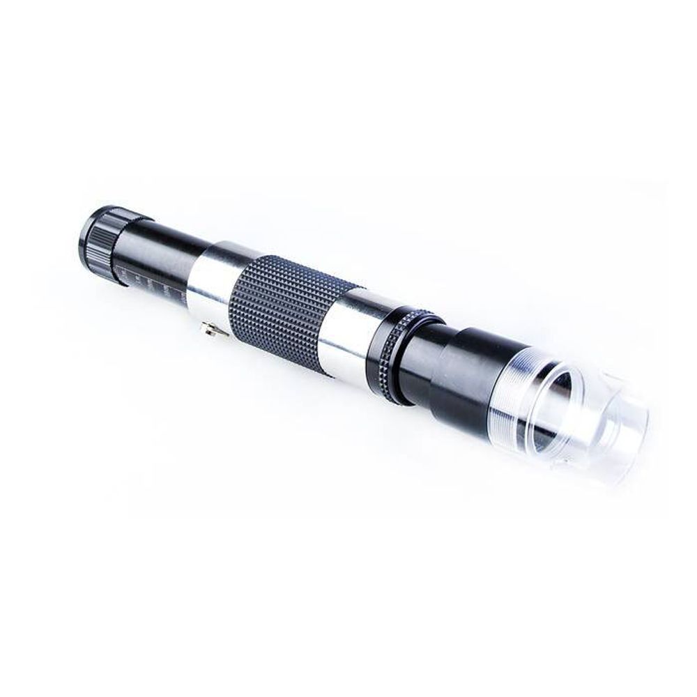Для того, чтобы превратить монокуляр в микроскоп нужно просто привинтить на объектив микроскопную фокусирующую насадку. Длина микроскопа составит 23 сантиметра. Для точного позиционирования микроскопа микроскопная насадка имеет встроенную прозрачную юбку, она позволяет задавать точное рабочее расстояние микроскопа и выполняет защитные функции.